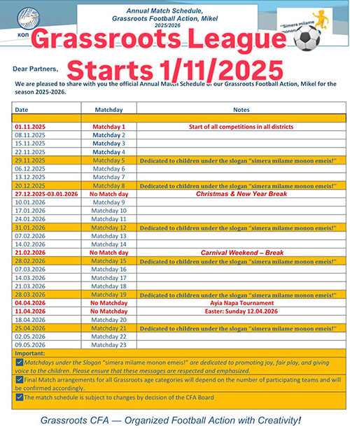 1. On Saturday 1st November 2025 will start the Grassroots League with every Saturday games.