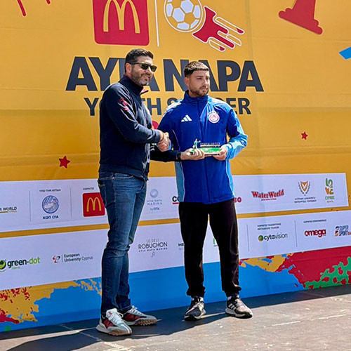 Our Coach Giorgos Tziarrides from our club - Olympiacos Academy Larnaca is one of the Coaches awarded at the McDonald’s Ayia Napa Youth Soccer Festival 2026 from Cyprus Football Coaches Association for his coaching, behaviour and ethos.