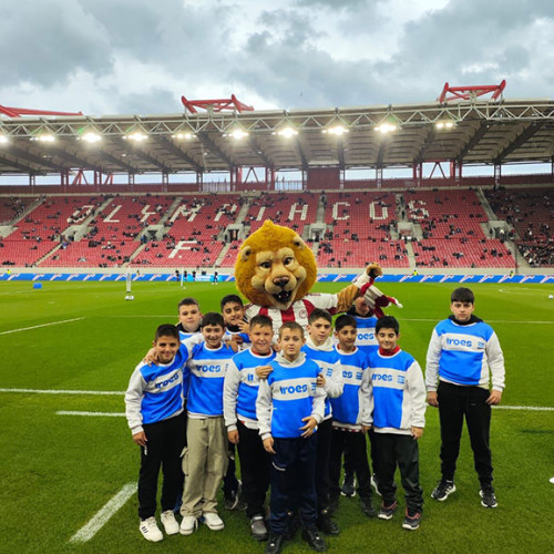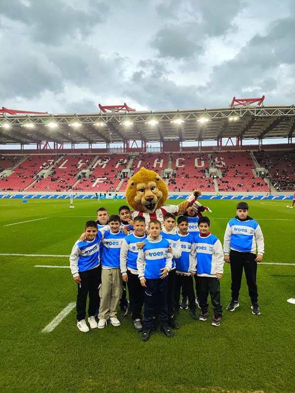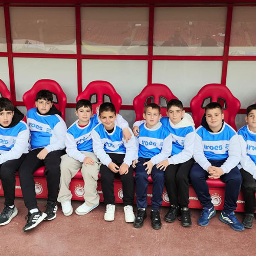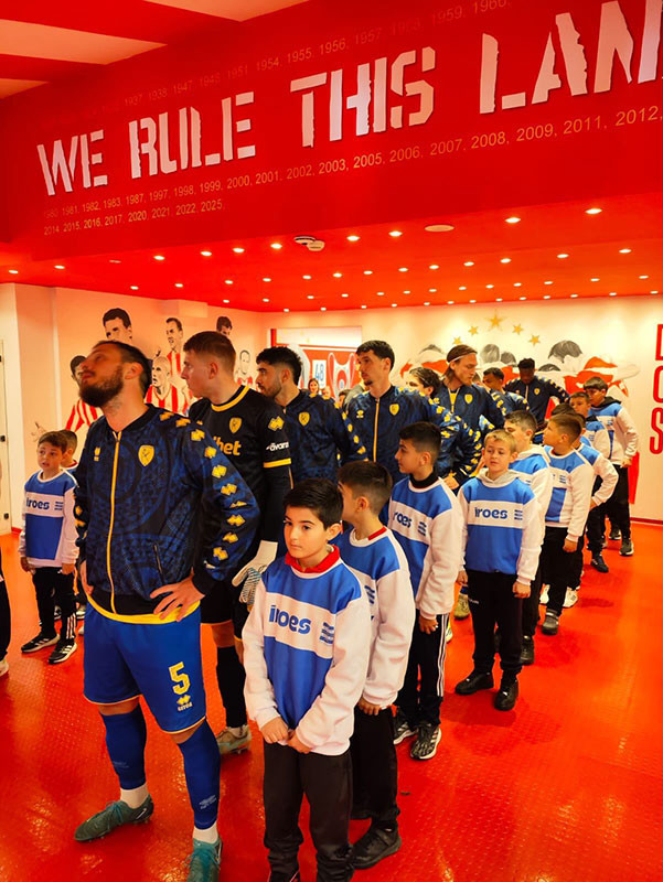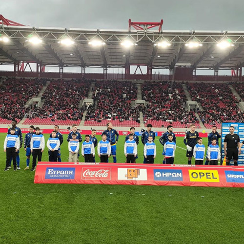 Some of our players in KARAISKAKIS STADIUM escord the Players of the first team OLYMPIACOS PIRAEUS.