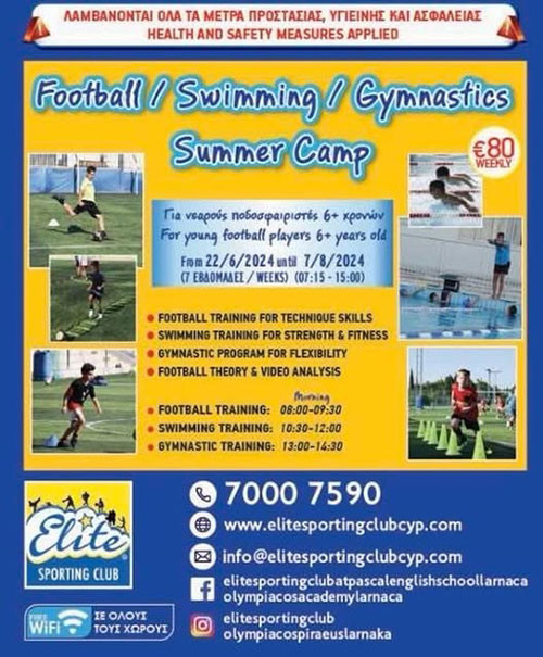 SUMMER FOOTBALL CAMP at ELITE SPORTING CLUB LARNAKA, that operating the last 13 years (from 2013).